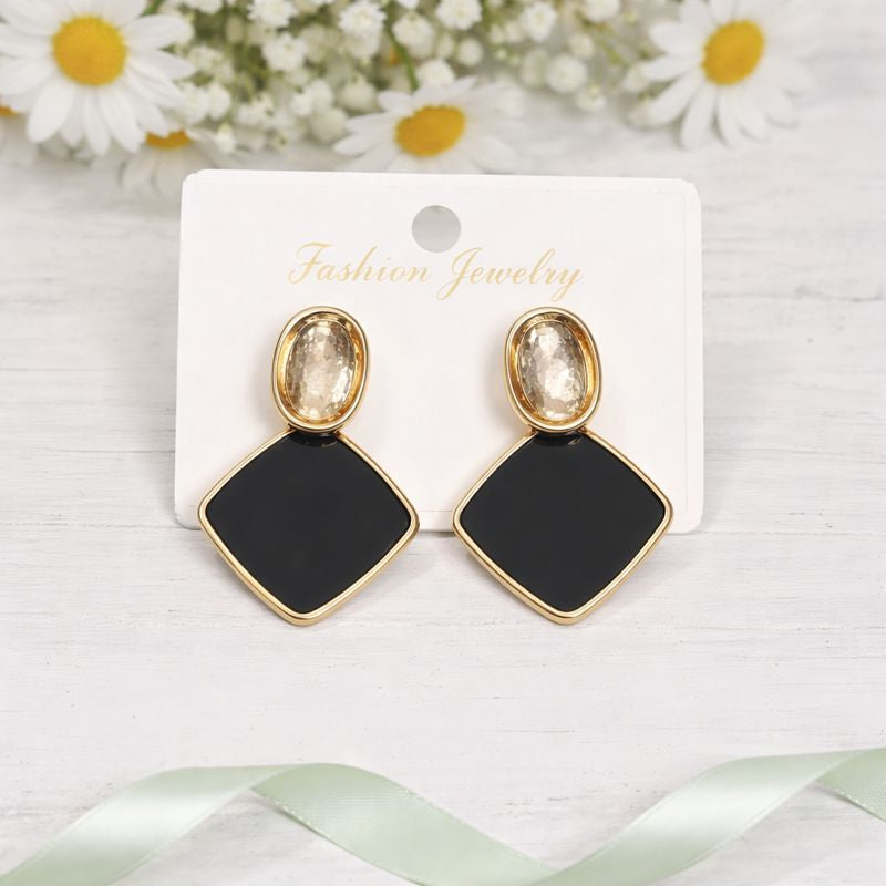 Make a bold yet elegant statement with our Korean Black Geometric Drop Earrings.